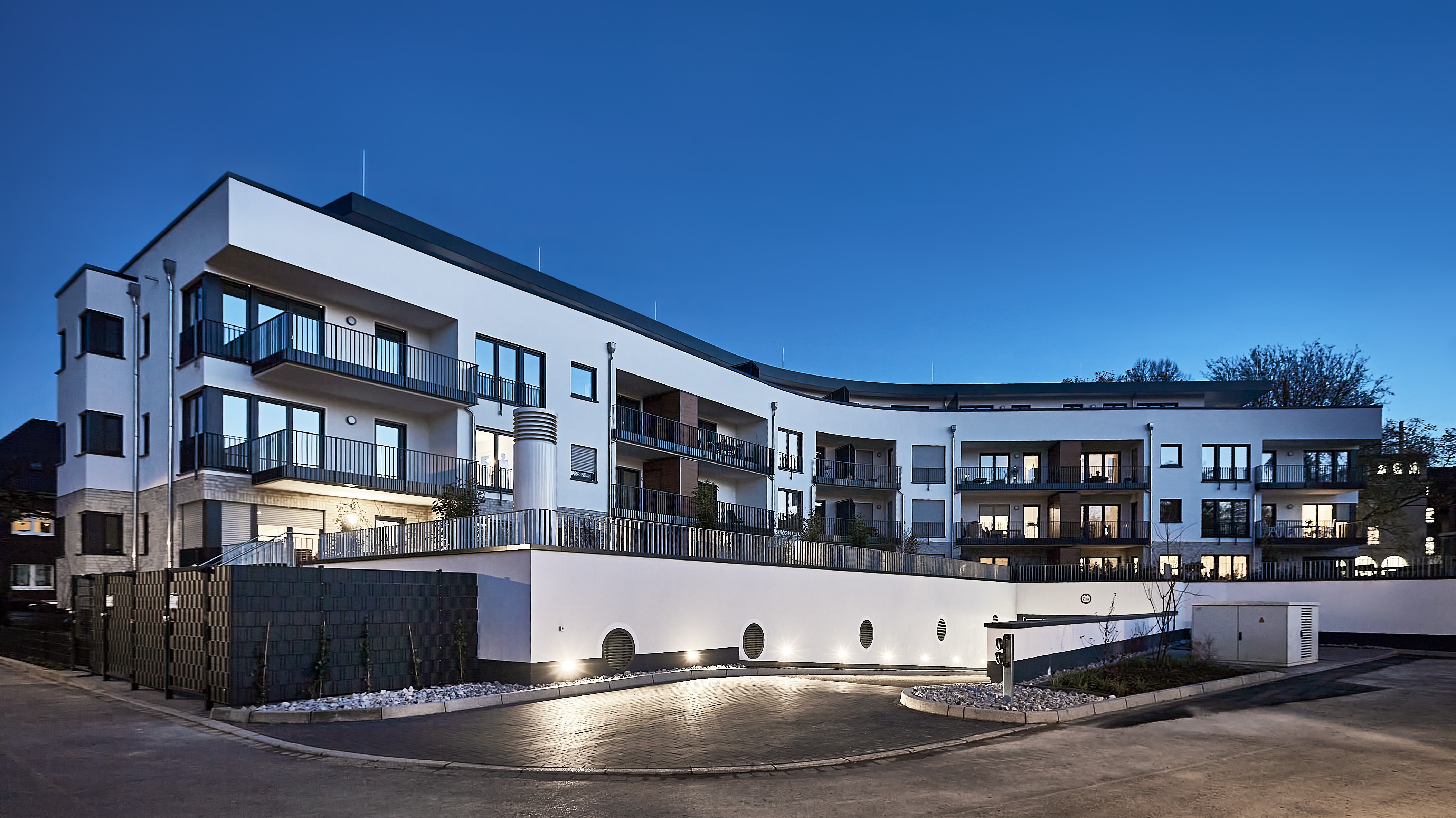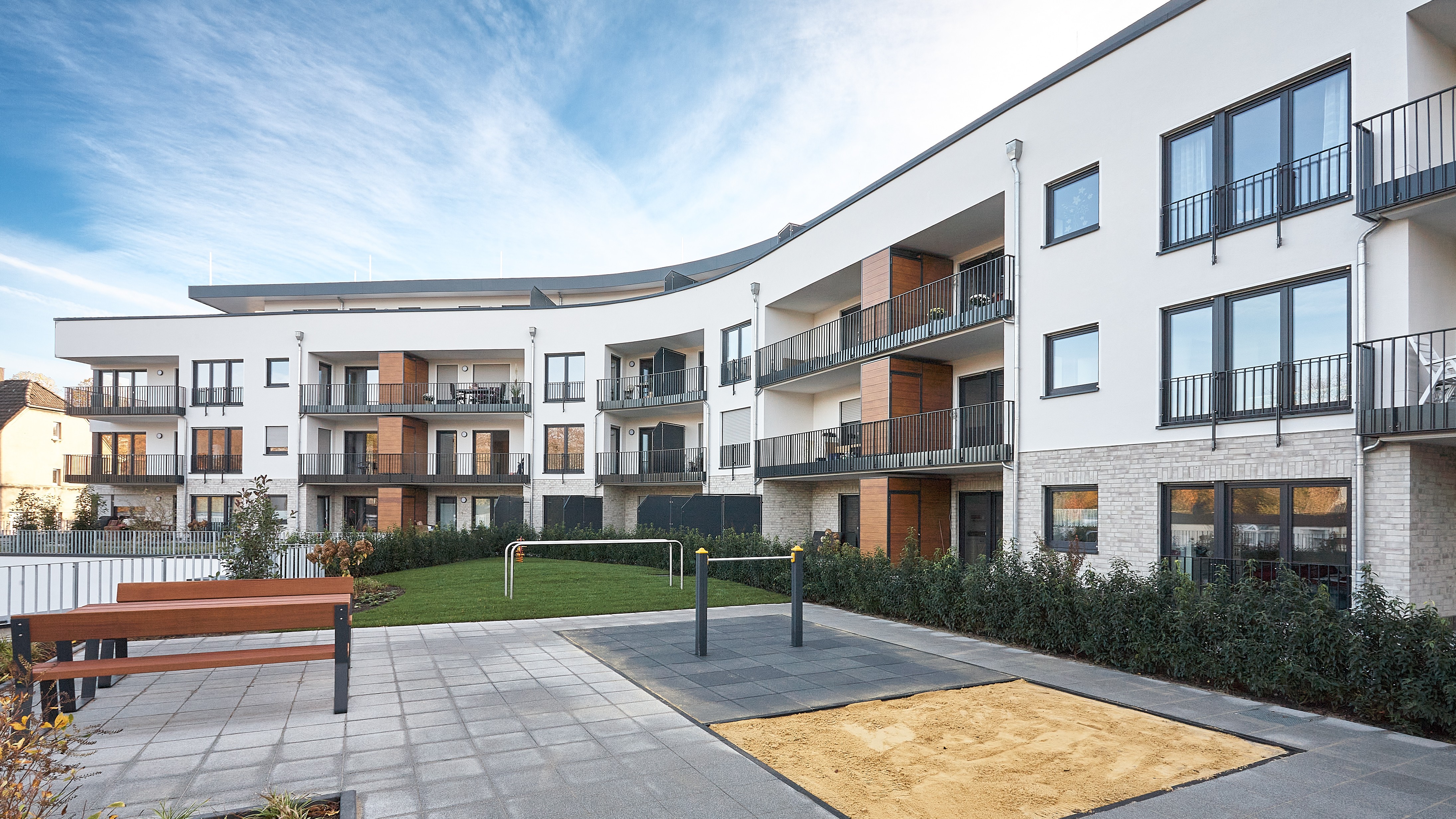 Der Lohofbogen bietet 33 barrierefreie Mietwohnungen in einem modernen Wohnkomplex, der rollstuhlgerechte Wohnungen, geförderten Wohnraum und frei finanzierte, gehobene Mietwohnungen miteinander verbindet.