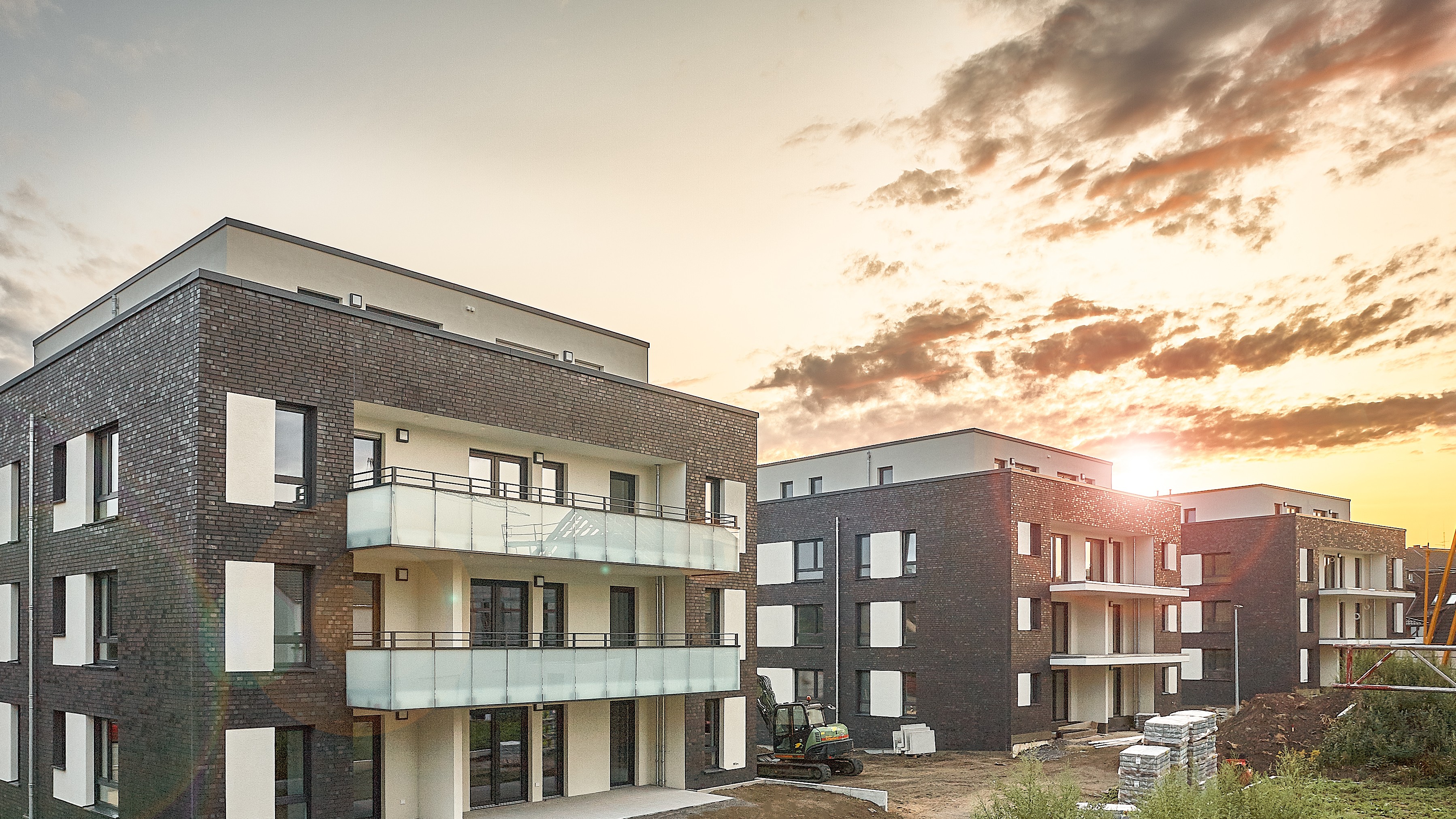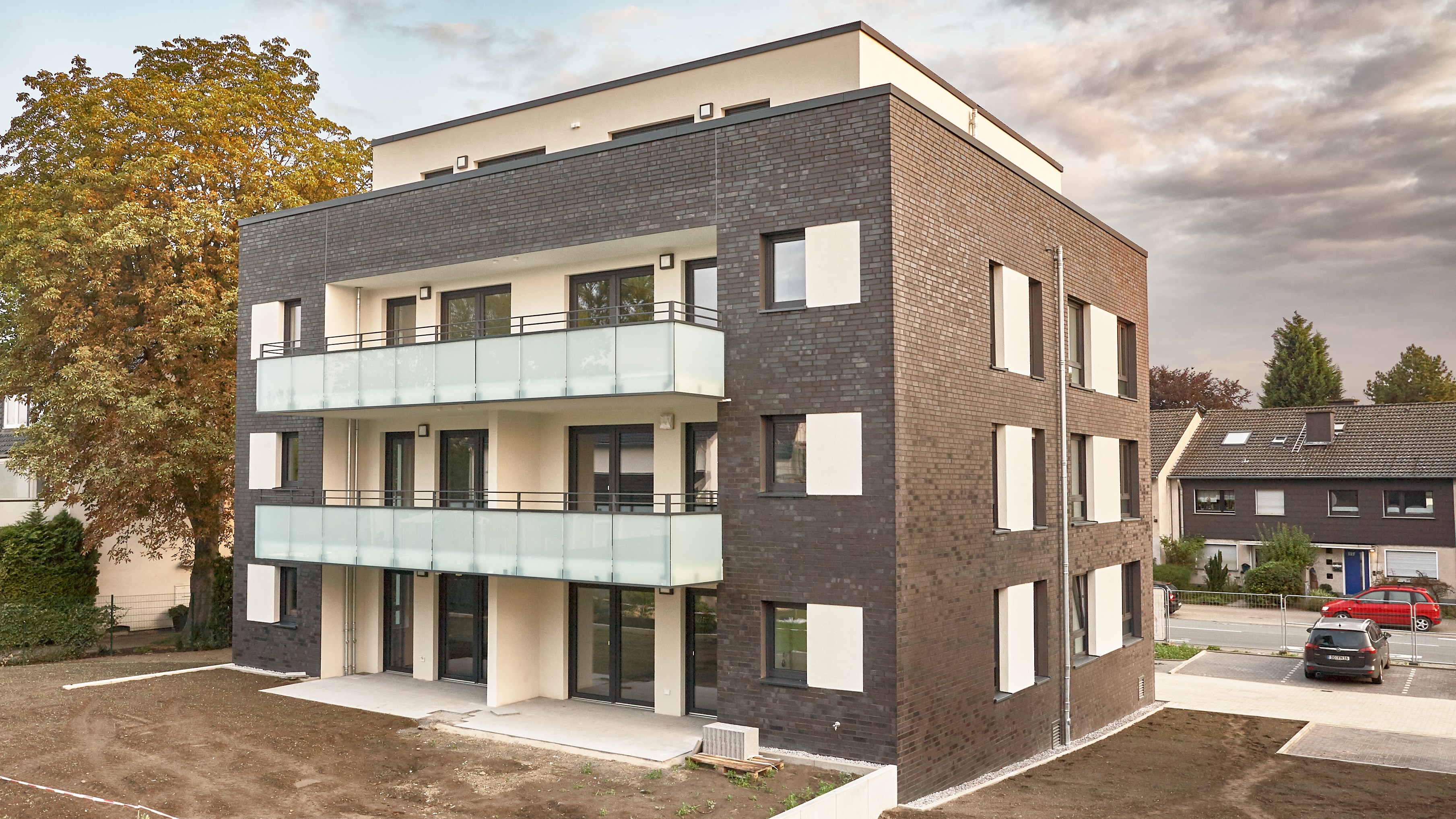 Ergänzt wird das Ensemble durch begrünte Außenanlagen mit Spielflächen, die zum Verweilen einladen.