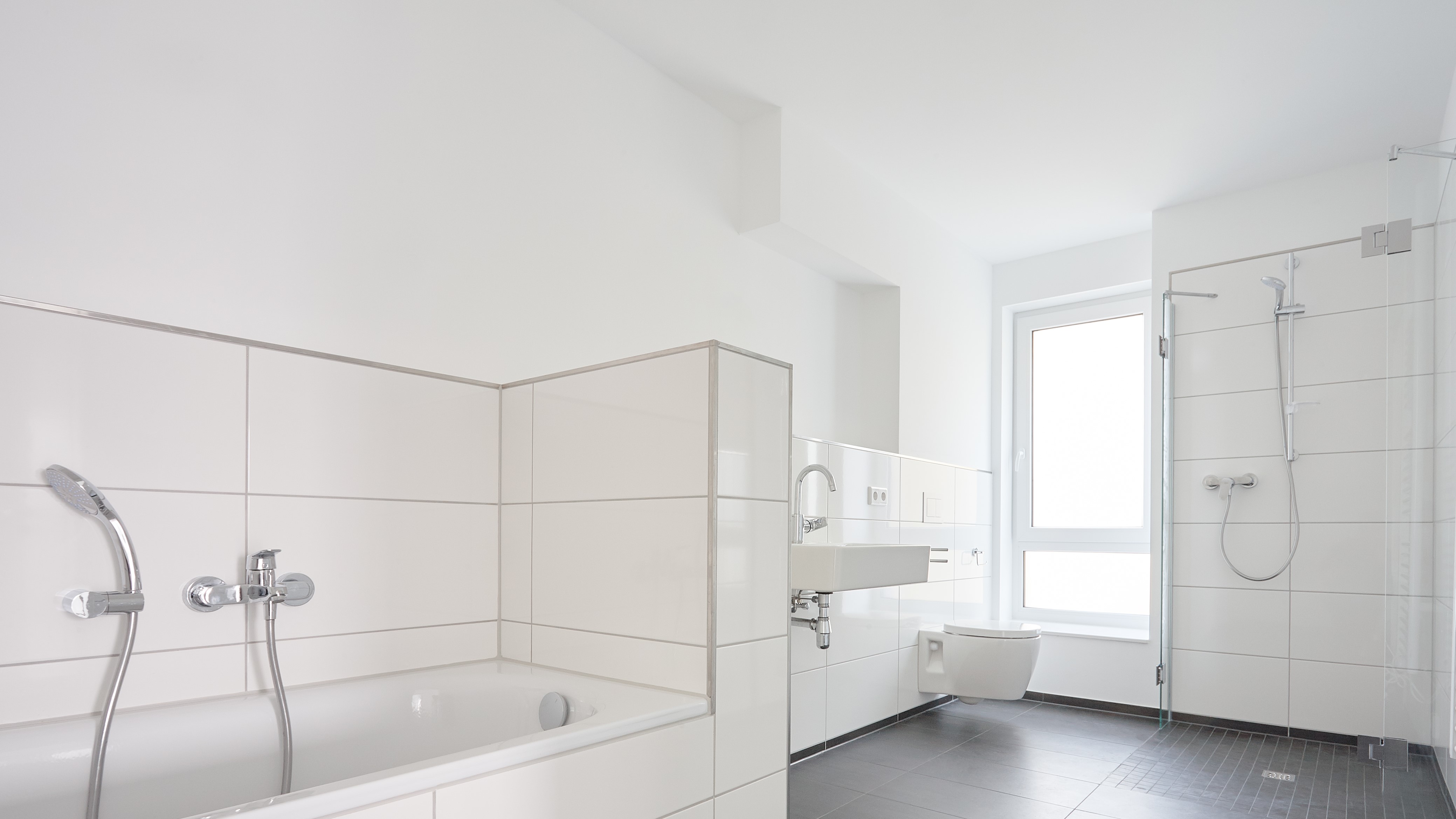 Die Wohnungen sind mit weißen Zimmertüren, hochwertigen Bodenbelägen und Tapeten ausgestattet. Im Tageslichtbad erwartet Sie eine Dusche mit ansprechenden Glaswänden.