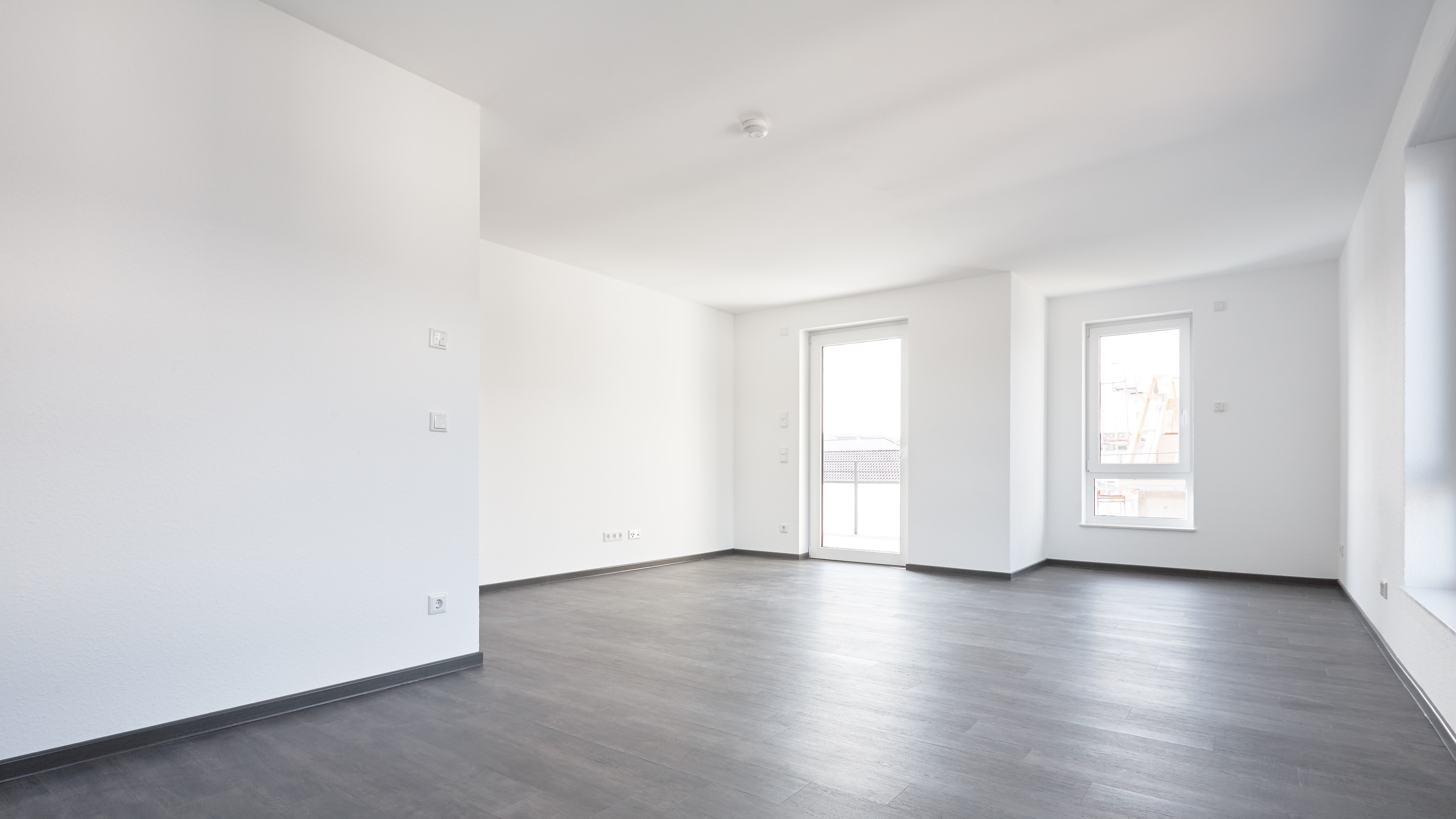 Viele bodentiefe, dreifachverglaste Fenster lassen viel Tageslicht in Ihre Wohnung.
