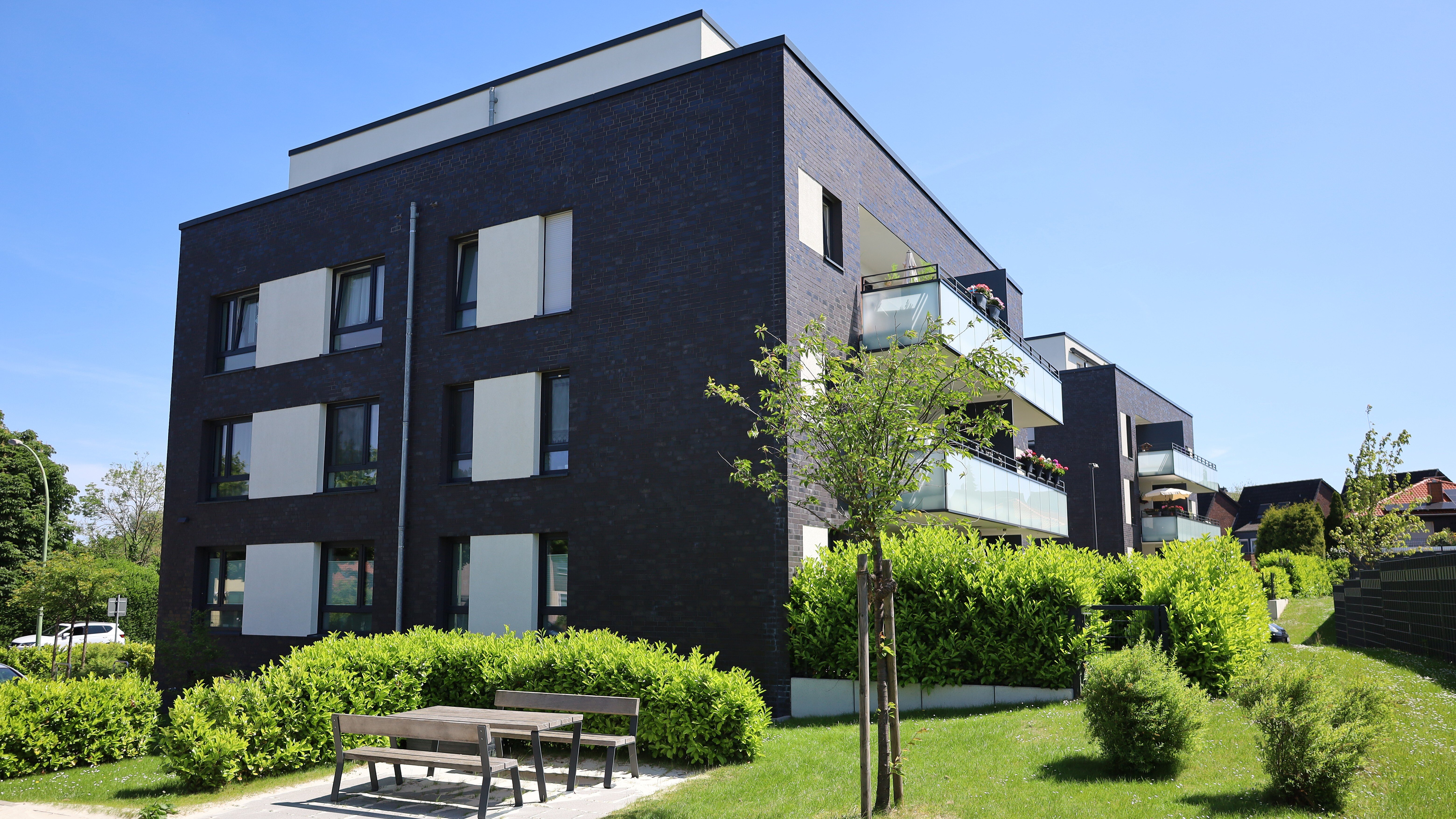 Die Wohnungen in den Obergeschossen verfügen über Balkone oder Dachterrassen. Hier können Sie entspannen, Sonne tanken und den Blick ins Freie genießen.